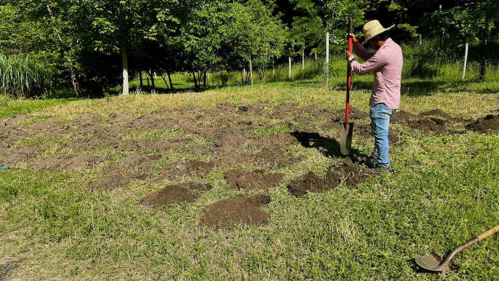 We have several dense patches of mugwort on the farm. Our mitigation efforts began by weakening the plants. We mowed the area and then smothered the patch with black landscape fabric, a process known as occultation. We left the fabric in place for over a year and then sowed winter rye to compete with any remaining mugwort roots and to rejuvenate the soil life. Winter rye, a commonly used cover crop, suppresses the growth of other plants.