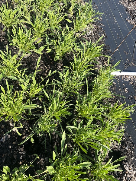 Newly planted Indiangrass (Sorghastrum nutans) and Switchgrass (Panicum virgatum) in early June 2024.