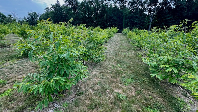 Despite the loss of our local chestnut, we can still produce delicious, large, blight-resistant chestnuts here in North America. At Arthur’s Point Farm, we’re planting orchards of Chinese chestnuts (Castanea mollissima) and Chinese-American hybrids, mostly sourced from our friends at Red Fern Farm and Route 9 Cooperative. We also grow chestnut trees for sale in our nursery shop. The number of new blight-resistant chestnut orchards being planted in the U.S. is growing rapidly, but is still far below what would be needed to meet current U.S. demand, and demand is far below what it once was.